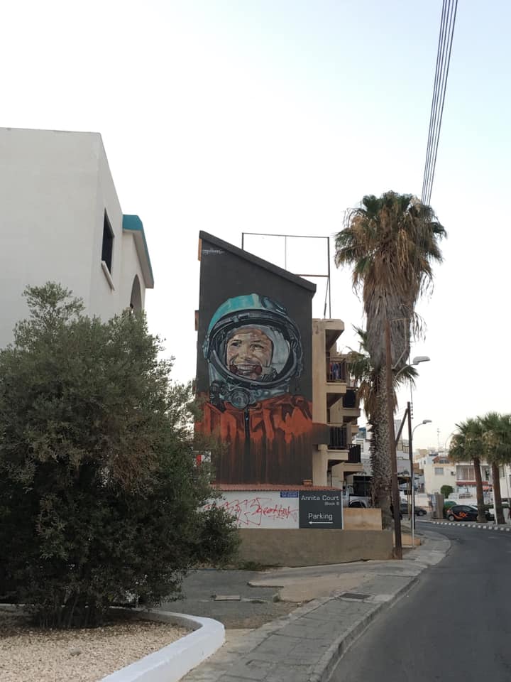 В Никосии есть памятник Юрию Гагарину, а в Айя-Напе известный художник нарисовал вот такое граффити.